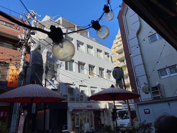 たっぷりと飲みながら空を見上げれば、雲ひとつない青空だった。ビルの間に見える青空というのは、なかなか普段は気が付かないものだが、この日は実に気分の良い青空を見ながらのんびりした。まあ、青空を見るのはビルの谷間ではなく、山の上とかビーチとかが良い気もするけれど……………