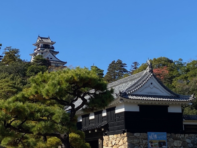 そう言う意味で、高知城は美人No.1とは言い難いが、少なくともトップ5にはランクインする。夏の高知は暑く湿気も多いので、晴れた日でもすきっとした青空が見えにくいのだが、冬であれば実にクリアーな青空を背景に高知城を見ることができる。高知城の写真を撮るならやはりこの時期がおすすめなのだな。
