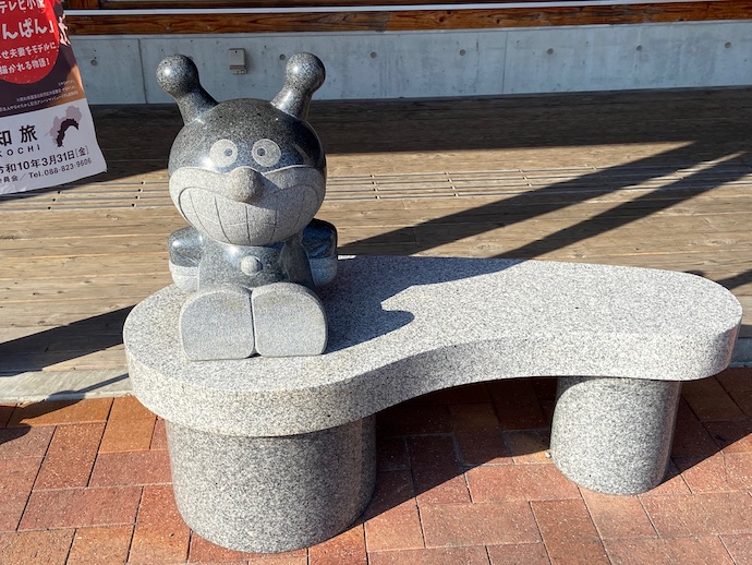 駅前からはりまや橋につながる道路沿いにも、あちこちにキャラクターベンチが設置されているのだが、その密度はちょっと寂しい。境港の町中に溢れるゲゲゲの妖怪シリーズみたくなれば、街歩きも楽しくなるだろうになあ。