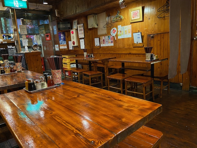 JR恵比寿駅西口を出たところに飲み屋の固まる一角がある。チェーン居酒屋は何故かこの街では生き残ることができず、個人営業の居酒屋が長生きするようだ。その中でも移植中の異色なのが「どんく」という町中華で、40年近く生き残っている。初めは長崎ちゃんぽん推しの店だったが、いつの間にか夜営業に比重が移り居酒屋メニューの拡大により、今では中華料理屋というより恵比寿的な居酒屋として確固とした地位を築いている。店内は暗めでニスのかかった木材で山小屋的雰囲気もある。こうなる前は蛍光灯が煌々と輝く、台湾的な明るい店内だったのだが。