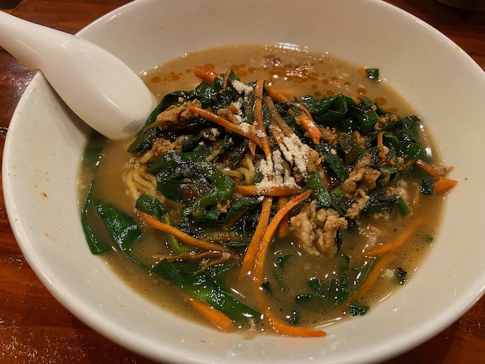 そして締めにはスタミナラーメンを注文する。この店は担々麺も美味いのだが、頼むのは確率9割でスタミナラーメンになる。ちなみに、担々麺と言っても通常四川料理で出てくる山椒の効いた痺れる感じの胡麻蕎麦ではない。胡麻風味の挽肉炒めが乗った「担々麺のようなもの」だ。まあ、そこも突っ込むとことではない。これをこの店では担々麺と呼ぶのだと理解して美味しく食べれば良い。