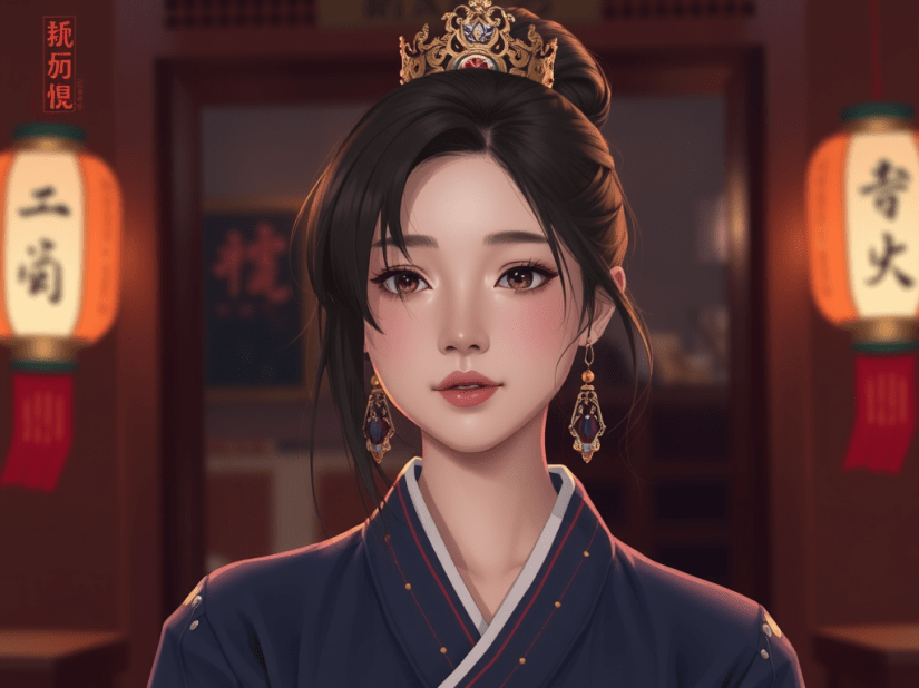 女侍風でもある。が、歌舞伎に出てくる女形がモデルのようにも見える。背景にある赤提灯も居酒屋のものではないみたいだが、書いてある文字自体が意味不明だし。
