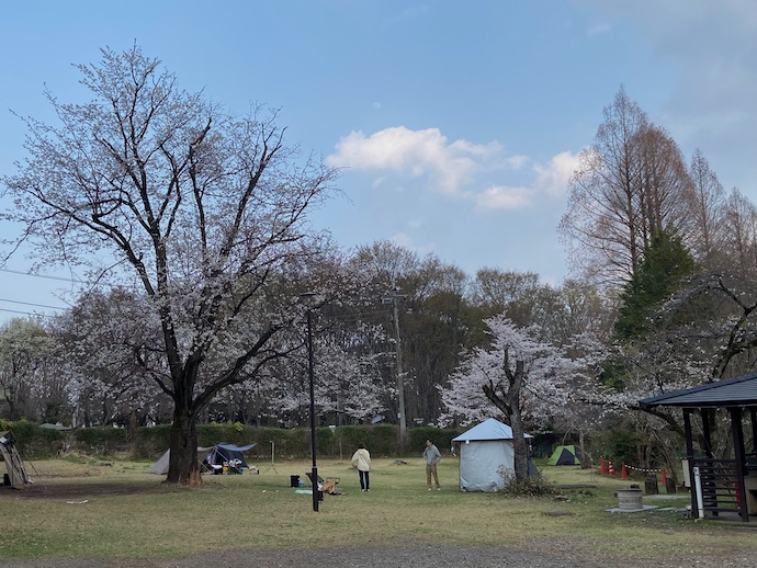 3月下旬には近くの公園にあるキャンプ場で花見をしながらキャンプした。例年より気温が高い日だったので実に快適だった。