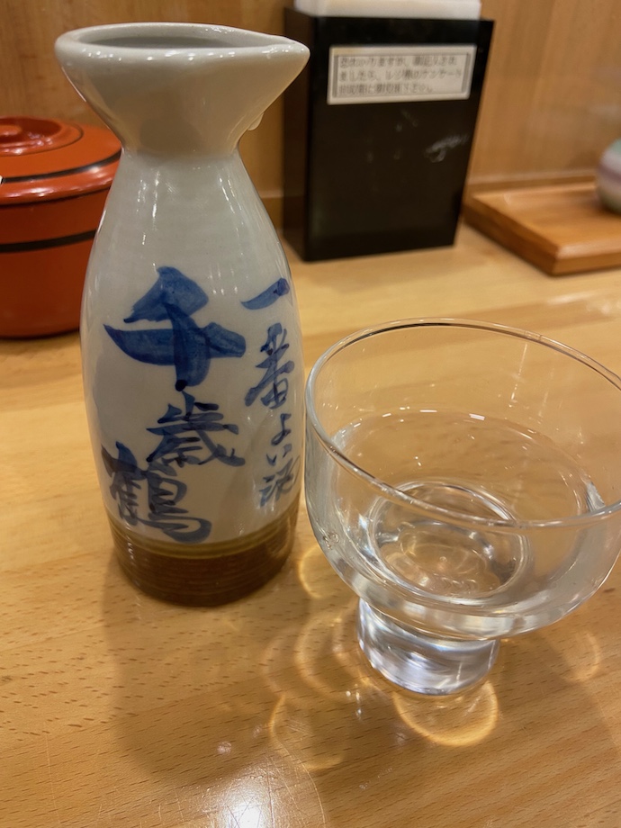 気を落ち着けるべく(笑)、冷たい日本酒を頼んでみた。北海道の地酒が微妙にクセがあるが、冷やして飲めばそれも美点に変わる。大ぶりのぐい呑み?グラスに並々と注ぎぐいっと一口酒を含めば、たいていの面倒ごとは忘れられると言うものだ。