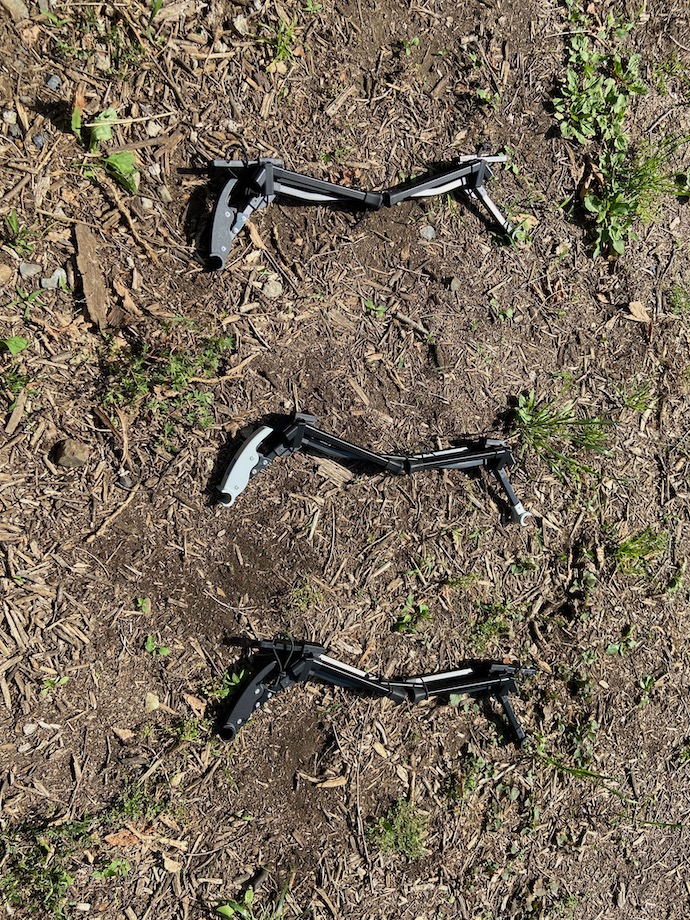 他社製品で最大の難関だった足の固定だが、他社製品はポールに空いた穴の向きを下に揃えて、シートに目一杯貼りを持たせた上で(これが大変むずかしい)、穴に足の金具を差し込むという方式だった。