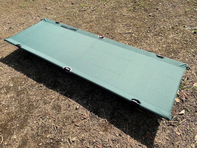 そこで考えたのが簡易型ベットであるコットだ。これであれば足の高さの分だけ地面と離れるから防湿性は高いはずだし、寝心地も良いだろう。