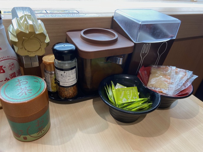 他のファストフードでも類似事件が起きている、卓上の無料調味料やガリ、紅生姜、漬物などをどう対応するかが重要改善ポイントの一つだが、この店では「客の選択」に委ねることにしたようだ。
