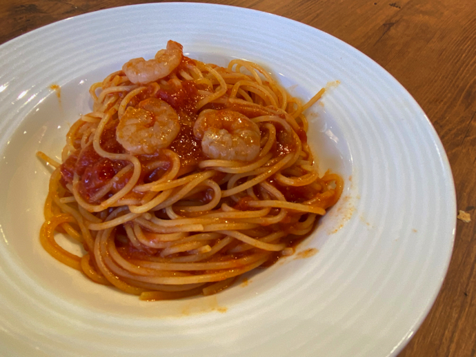イタリアンといえば、短絡的にパスタを思い浮かべるのが日本人的特性だと思うので、まずは定番トマト味のパスタを注文した。化学調味料の味が強すぎることもなく普通に美味しい。トマトソースの味もしっかりしている。パスタは硬めで、最近はヤリのもちっと系ではない。カルボナーラなどのクリーム系パスタはソースの加工度よりも生クリームの使用量で加減ができるので、そちらもチェーンの実力を図るには試食するべきだが、とりあえずトマト系は十分人気商品になる力がある。