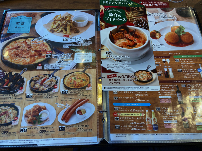 メニューをじっくり眺めていると、サイゼリヤとの対比が見えてくる。原料で大きな違いはない。サイゼリヤがオペレーションの簡素化のために落としたようなメニューがあちこちに目立つ。これが王者サイゼリヤを迎え撃つために研究した成果だろう。敵の嫌がることをやるはマーケティングの鉄則だが、それを忠実に実現している「オリーブの丘」はすごいのだ。