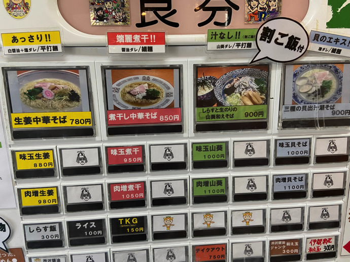 土曜日には本体の製麺屋が、麺のアウトレットを、この店の奥で開催するらしい。面白いことを考えるものだ。入り口にある自販機を見ると、何やらいろいろと書かれているので、じっくり眺めてみた。基本的にラーメンは4種類あるようだ。