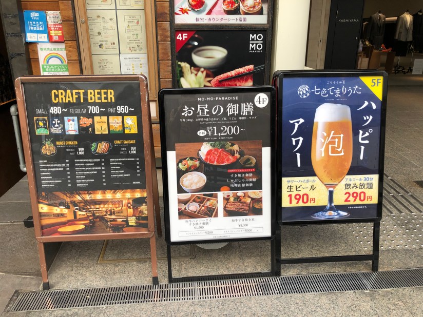 ということなのだが、夜8時以降は当面諦めるしかないので、昼飯の時にちょとだけビールをいただくという作戦で、パワーランチ(少人数)を試みた。新宿のよなよなエールの店は、実に挑戦的な立地で、真横には5回建てのサッポロビール・ライオンの巨大店舗があり、歩いて1−2封のところに、やはりアサヒビールの巨大ビヤホールがある。どうしてこんな場所に出した? 喧嘩したいの? と言いたい場所なのだが、それも心意気というものだと思うことにしよう。
