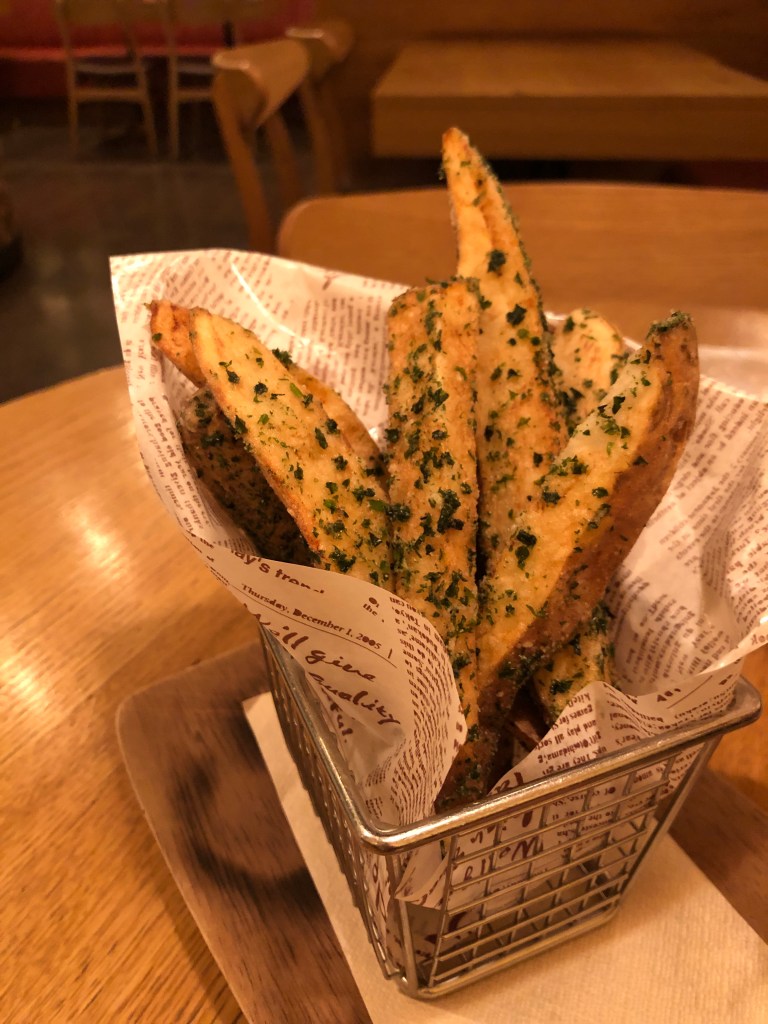 酔っ払うほど飲むつもりもないので、冷たいビールをちびちびやりながらポテトを注文した。フィッシュ&チップスの魚抜きかよと突っ込みたくなる包装紙だった。ロンドンに行ってパブに入り飲んだビールは、予想よりも冷たかったがキンキンに冷えていたわけでもない。期待して頼んだフィッシュ&チップスだったが、芋は不味いし、魚は臭いし、実に残念な食べ物だったが、イギリス人の知人に聞けば、その程度の食べ物らしい。日本で提供されるフィッシュ&チップスは、おそらくオーバースペックというか、勝手に日本人的向上志向で必要以上に改善してしまったものなのだ。