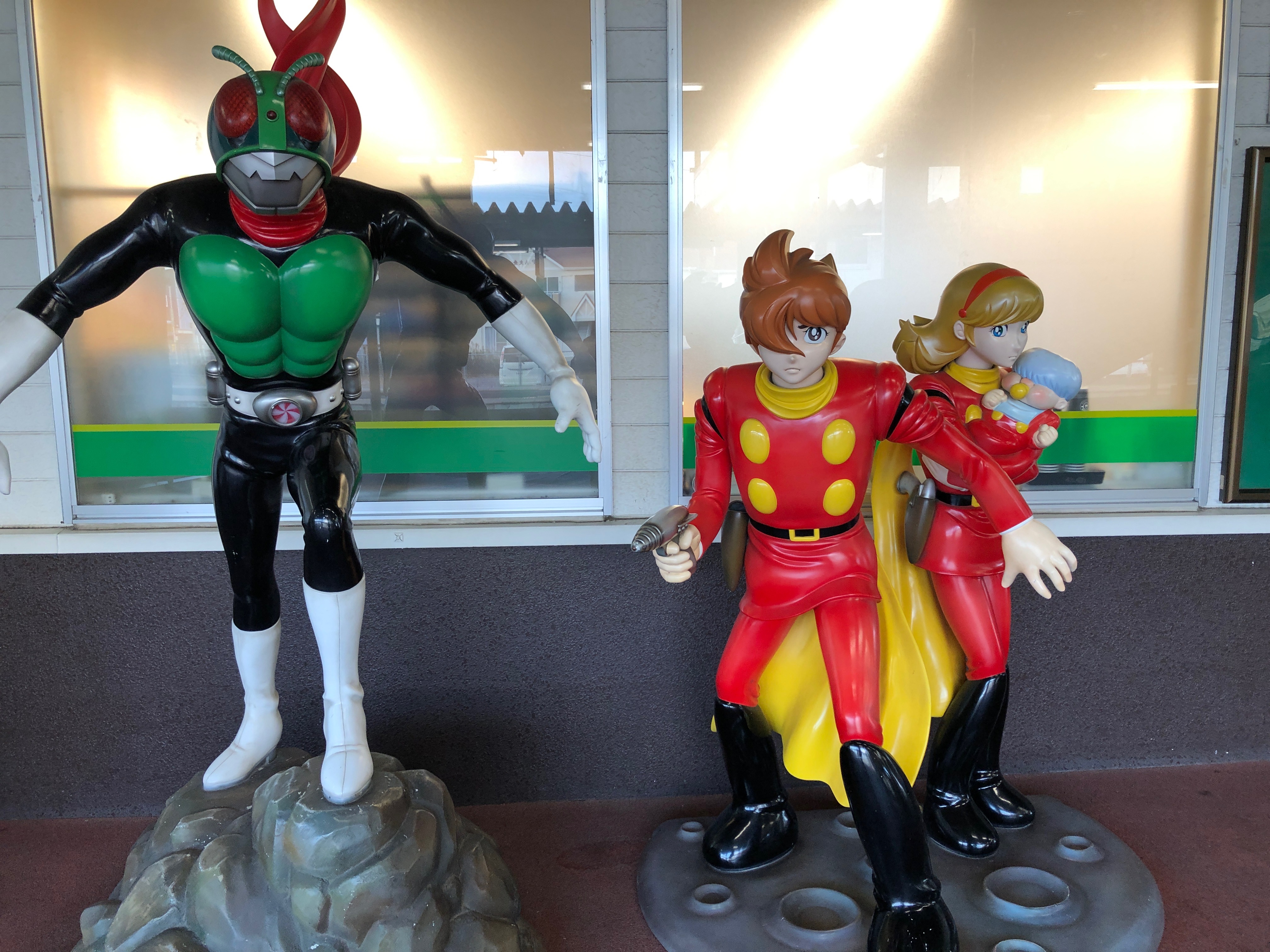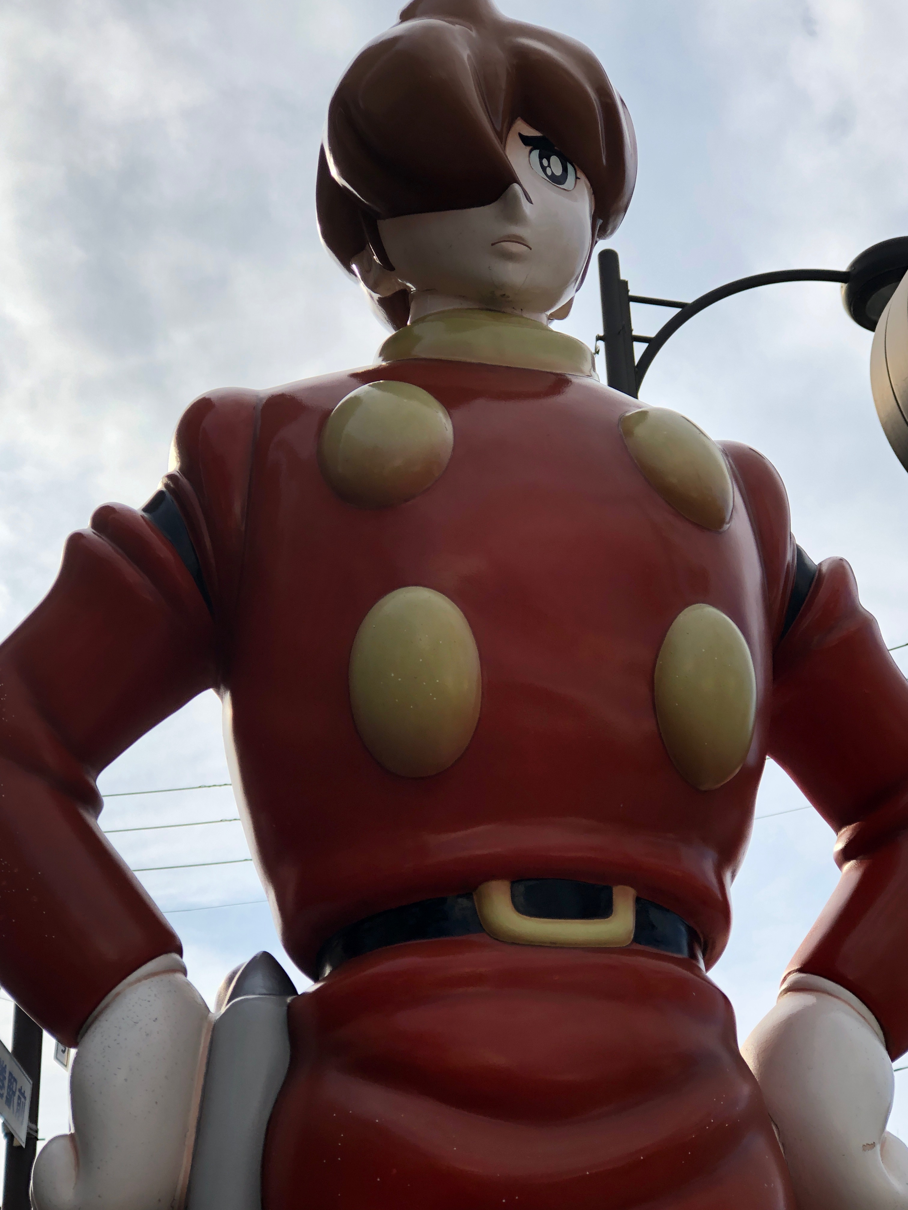 駅から漫画館までは歩くと15分くらいかかるが、その道筋ではサイボーグ戦士たちがお出迎えしてくれる。エースの009は、駅からちょっと離れているが、正面を向いて凛々しいお姿。