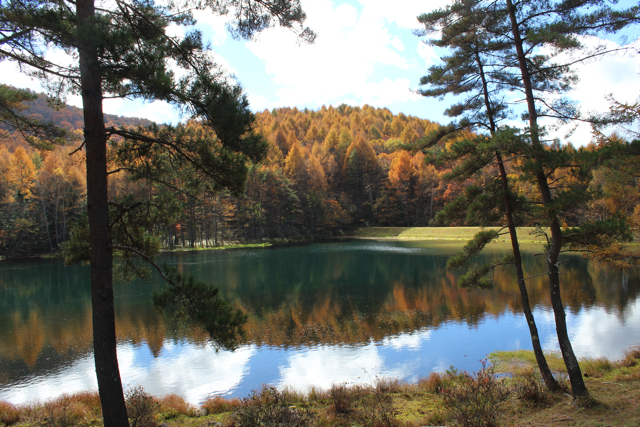 それでも秋になると見事な光景になる場所が何箇所かあり、お気に入りが「御射鹿池」。