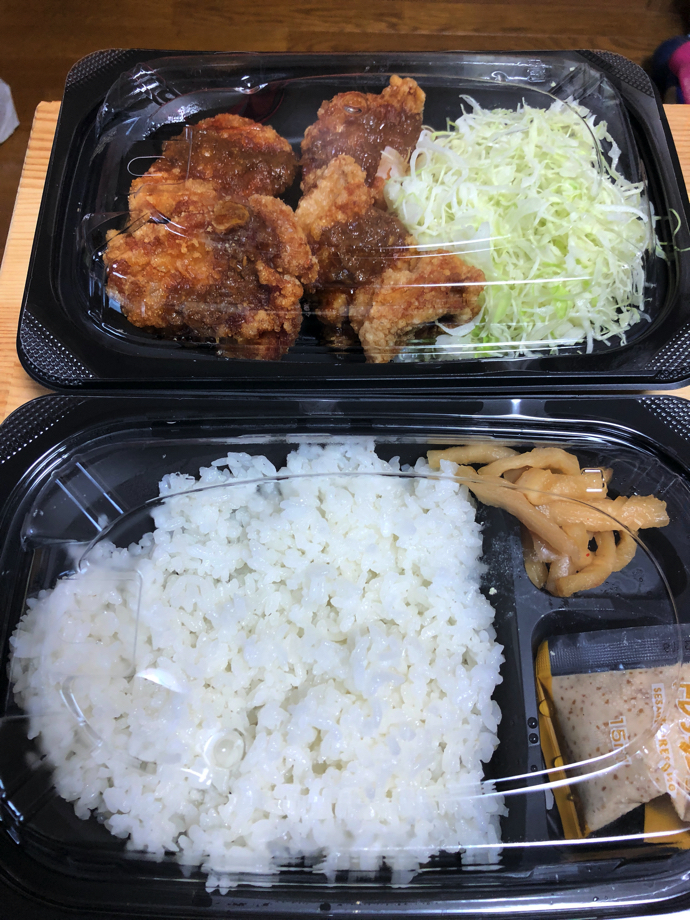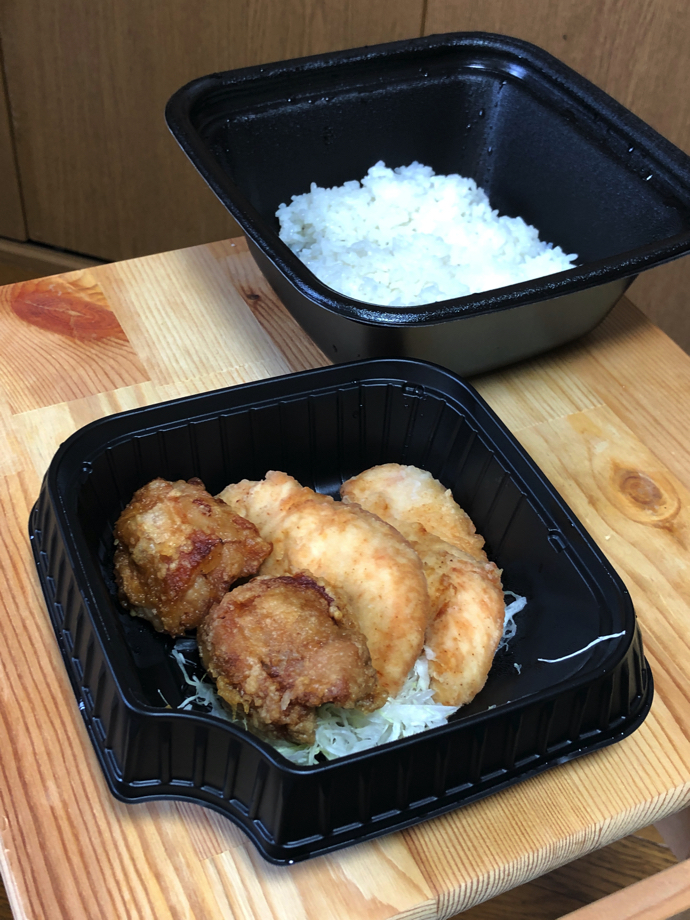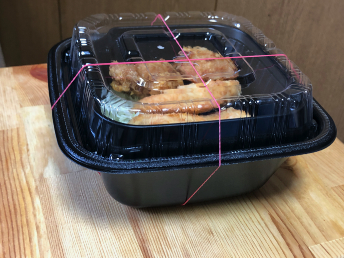 そして、天ぷらは専用紙容器に自分で詰めるのだが、この箱も内側にコーティンスがされていて、油漏れが防止されている。渡されたプラ容器にネギと生姜は詰め放題だった。セットで一緒に買ったいなり寿司には「テイクアウトの製造表記」がある。これは実に素晴らしいことで、大概の店のテイクアウト対応では、この製造ステッカーが貼られていない。(作り置きでなければステッカーなしでも法的問題はないはずだが、企業としての倫理みたいなものか)