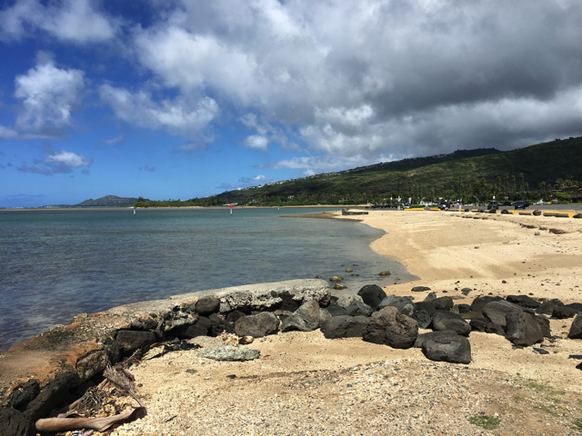 オアフ島は、当たり前の話だが周りが全部海で、ビーチだらけ。良い景色を探して海沿いに車を走らせると、あちこちに人のいないビーチが現れる。ハワイで1年間くらい暮らしていたのが、今から30年以上前のことだが、その頃とあまり景色に差がないのは不思議なことだ。津波を避けて海沿いに町がないというわけでもなく、それでは山の中に人が住んでいるかというと、そうでもない。海岸と山の中間にバラバラと町が点在する。東京23区くらいの広さに100万人くらい住んでいるから人口密度は東京の1/10くらいなのだと納得はしているのだが。それでも何十年も経てばいろいろ変わるものだ。