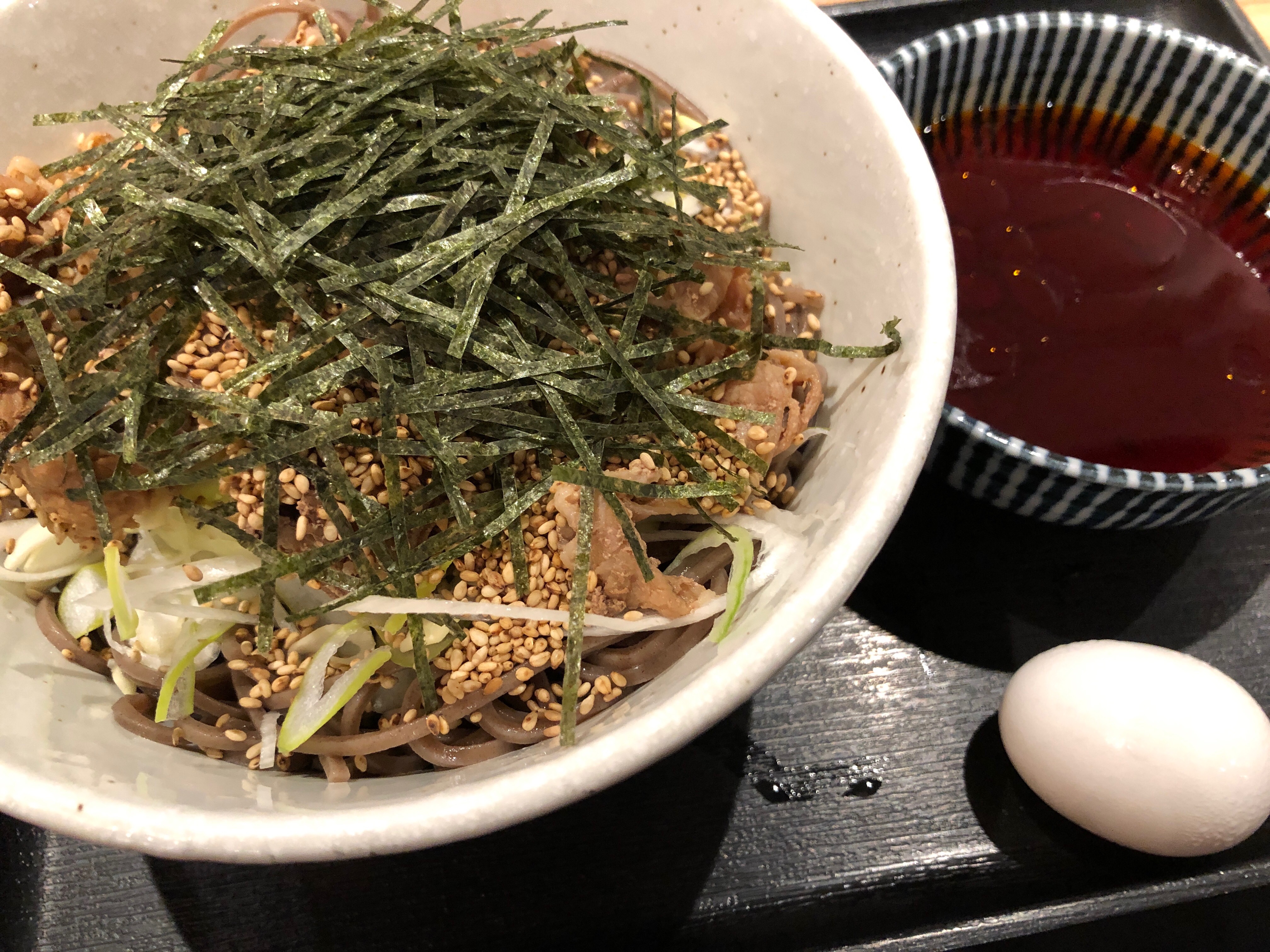 吉野家が女子高生の攻略で陥落し、いつの間にかシャレ系メニューが増えた。そのうち伝説のすた丼も女性客に侵攻されるかもしれない。その時、最後まで残るのはこのラー油蕎麦であると願いたい。