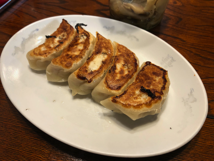 餃子も名物だそうで、焼き餃子と水餃子を一皿ずつ頼んだが、肉が多めの濃厚スタイル。ただし、香辛料はやはり強めに効いている。好みにもよるだろうが、この辛いラーメンには、水餃子が合うような気がする。