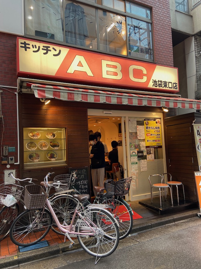 昼時には近隣の会社員が押し寄せる人気店なので、昼のピークをずらしていくようにしているのだが、それでも店内はほぼ満席だ。いつ行っても店頭に自転車が置いてあるのが何やら池袋らしくない。店のちょっと先の交差点を渡れば西武百貨店という超繁華街立地なのだが……。まあ、この辺りが池袋らしいということかもしれない。