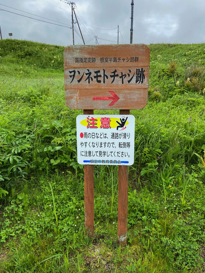 根室市内から車で20分程度、納沙布岬の近くに「日本100名城」がある。多分、一番東で一番北にある名城だ。チャシと呼ばれるアイヌの軍事施設で城郭跡地だ。説明書きがなければ、ただの原っぱとしか思えない場所にある。ここに立てこもって戦争をしたとすると、いったい誰が相手だったのかと思うような場所だ。そもそも高配置に守るべき場所があるようにも思えない、