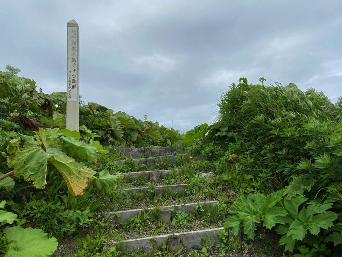 チャシの入り口から見ると台形の城郭基盤が見て取れる。ここに城?が立っていたようだ。おそらく海岸がよく見える場所ということで作られたのだろう。ということは、戦う相手は海から攻めてきたわけだ。トドの背に跨った海洋戦士みたいなものか?などとおバカな空想をしていたが、夏だというのに気温は低い。冬だったら、眉毛が凍る寒さだろう。